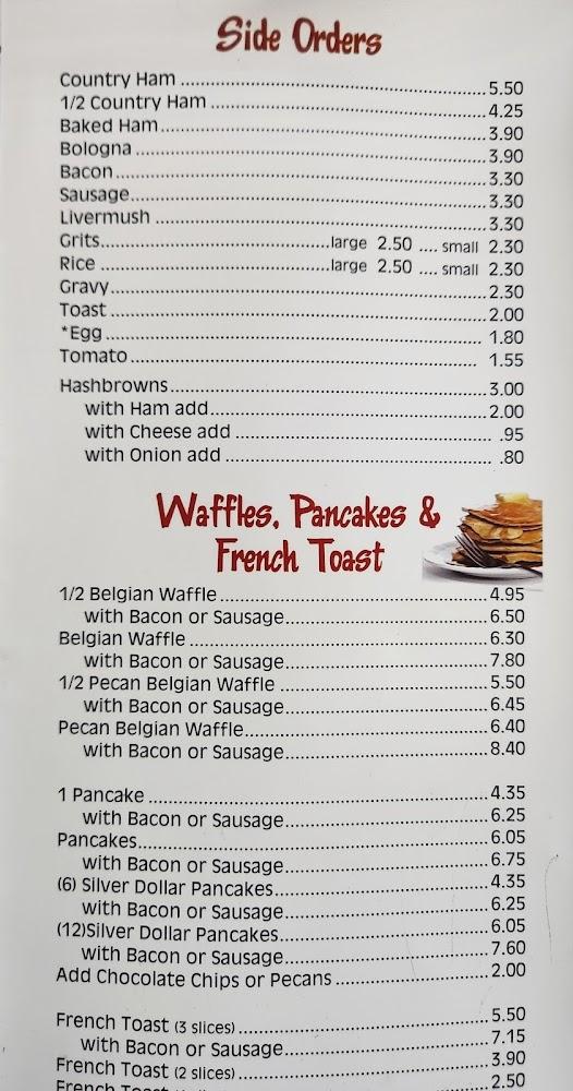 Breakfast Nook boasts a delightful menu full of traditional breakfast options. Familiar favorites include fluffy pancakes, crisp waffles, and hearty omelets filled with cheese, bacon, or vegetables. Biscuits take center stage here; the biscuit and gravy combo is a crowd favorite. Each dish reflects comfort and community, encapsulating southern flavors people crave. For those craving something light, the menu also offers refreshing smoothie options. The selection of sandwiches, including country ham and classic grilled cheese, caters to various tastes, perfect for a mid-morning break.